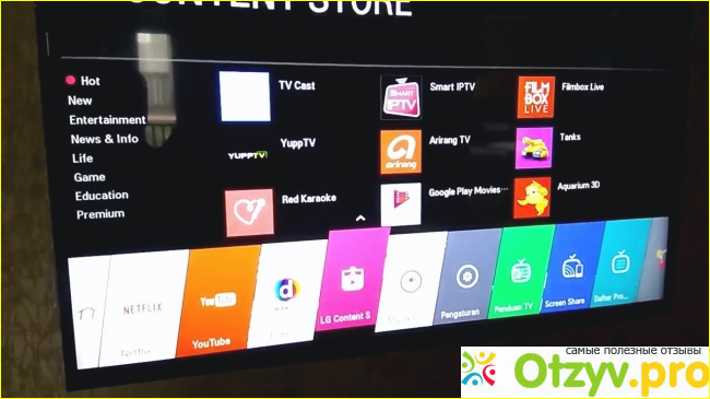 Эта модель оснащена функцией Smart TV, благодаря этому можно не ограничивать себя просмотром передач эфирного ТВ. Владелец может подключиться к интернету, пользоваться мультимедийными онлайн-ресурсами, скачивать и устанавливать различные приложения.