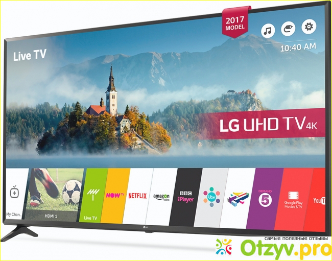 Не удачный пульт, мы от него отказались, практически он не удобен, мелкие кнопки. Если ставить телевизор на пол, ножки на вид слабоваты, на практике не использовали. Звук не слишком громкий, если хотите смотреть кино в большом помещении, возможностей может не хватить, но для кухни подходит в самый раз. Не насыщенный черный цвет, для темной спальни не подошел бы, для светлой комнаты, стены вписывается хорошо. Все приложения заложенные в LG 43UJ630V, к сожалению(или к счастью)платные. Если бы было хотя бы одно бесплатное, был бы стимул, к покупке других.