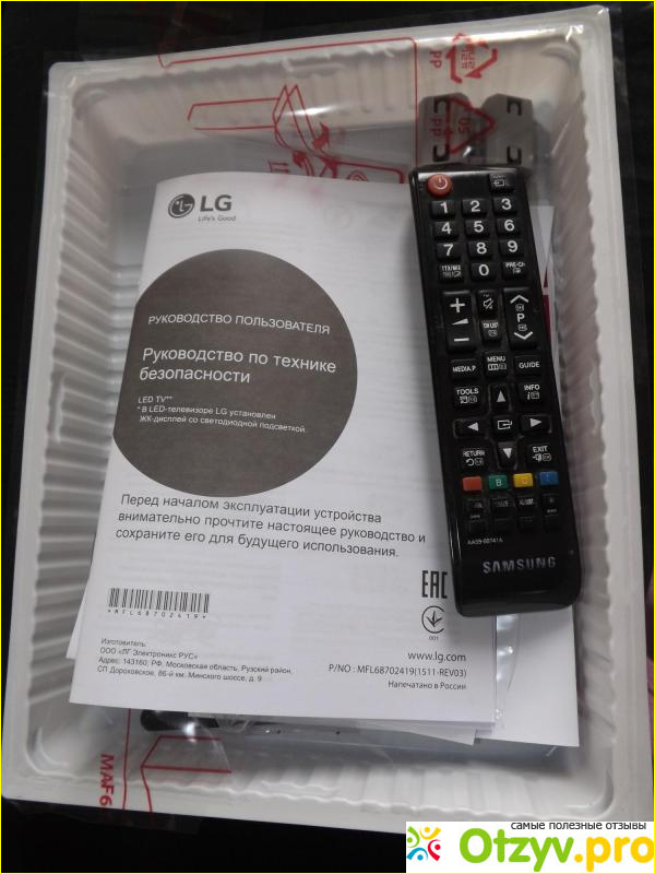 И так, что же собой представляет данный телевизор. Модель данного телевизора от 2015 года, вполне себе новая модель. Приобретали мы в 2016 году. Экран у данного телевизора 49 дюймов, согласить довольно широкий экран, мы не могли не нарадоваться такого большому первому телевизору в нашем доме. Подключить его не составила большого труда, даже ребенок справился бы с такой задачей. Нужно всего лишь включить антенну и сетевой кабель. Ну и конечно в комплект входит пульт дистанционного управления, который был надежно упакован, чтобы не повредить его при транспортировке, так же как и сам телевизор.