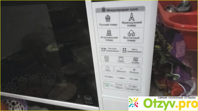 Что касаемо разморозки, то она регулируется четырьмя устанавливаемыми вами параметрами, то-есть это завитит от скорости разморозки и качества необходимого вам выбираются параметры на панели задач. Так же производителем заявлено что в этой микроволновке можно приготовить не менее сорока различных блюд, в том числе Русской кухни, Итальянской кухни, Французской и восточные блюда. По панельке управления можно сказать что она удобна, клавиши кнопки нажимаются легко, без глубокого продавливания, разобраться в управлении сможет любой человек, в инструкции всё написано и разработчиками сделано управление максимально удобным.