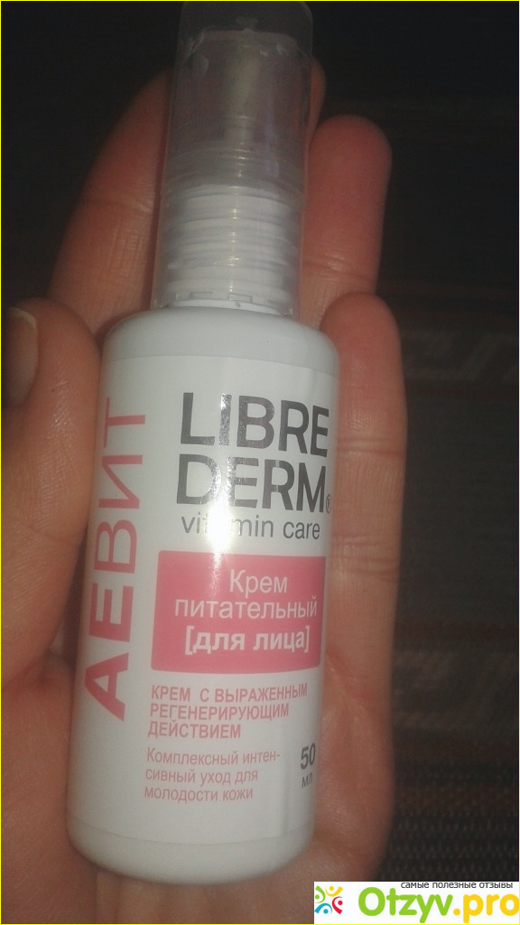 Либридерм аевит питательный крем - крем, входящий в серию одноименной косметической серии. Данный крем предназначен для питания кожи лица и имеет регенерирующие свойства, антиоксидантные, затормаживает процессы старения кожи, улучшает тонус, подтягивает, придает коже сияющий вид. Крем Либридерм аевит не содержит отдушек и красителей. Все компоненты, содержащиеся в нем абсолютно натуральные, поэтому этот крем подходит обладательницам чувствительной кожи и кожи склонной к аллергическим реакциям. Производитель описывает состав крема таким: выходя из названия уже понятно, что в составе есть витамины А и Е; каприк; вода демирализованная; глицерин; купаж трав , состоящий из эдельвейса, розмарина, малины и т. д. В данном кремчике удачно подобраны компоненты таким образом, что бы уход был максимально бережным. Производитель позиционирует Либридерм аевит для использования не только обладательница сухой кожи, но и жирной ( не могу ничего утверждать, так как по моему мнению, для жирной кожи он тяжеловат). Самыми основными компонентами есть витамины А и Е. Именно этот витаминный коктейль защищает нашу кожу на уровне клеток от старения и повреждений, восстанавливает, ускоряет регенирацию кожи, выводит токсины. Помимо основных своих функций, витаминки входящие в состав крема еще и стимулируют выработку коллагеновых волокон, которые и предотвращают появление морщин. Растительные экстракты кроме своеобразного аромата ( на любителя) насыщают кожу энергией, оказывают фотозащитное и тонизирующие воздействие. Крем Либридерм аевит выпускается во флакончике с дозатором. Это обеспечивает максимальную сохранность крему и приводит к минимуму возможность попадания в крем пыли. Хоть я и любитель кремов с дозатором и неформальных упаковочек, но в этом случае производитель не продумал длину трубочки. Поэтому, когда крем начнет подходить ко дну, дозатор просто не будет его захватывать. Небольшой минус, но кто захочет, тот найдет способ вытянуть. Этим кремом я пользуюсь два раза в день. Утром он отлично служит как основа под макияж, так как не имеет жирного блеска, а кожа приобретает легкое свечение. Вечером отлично питает мою кожу.