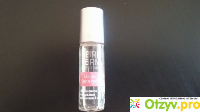 Само по себе масло и выглядит, как масло). То есть оно привычного светло-желтого оттенка. Но запах очень приятный, мне напомнил запах карамельки или может слегка сладковатый цветочный аромат. Состав масла для губ тоже очень порадовал: рициновое и миндальное масла, персиковое масло, витамин Е, витамин А, антиоксидант и парфюмерная композиция.
