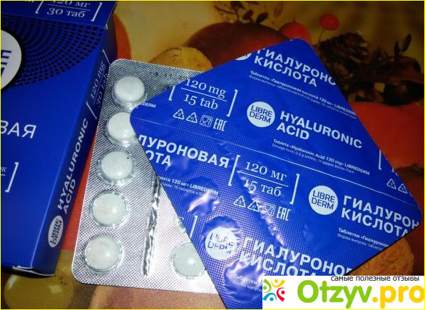 Продаётся в картонной коробочке, выглядит в виде обычных таблеток. В составе биодобавки аскорбиновая кислота - при совместном поступлении с гиалуроновой кислотой последняя усваивается гораздо лучше.