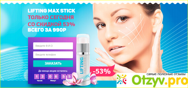 :о что делать, если денег на инъекции и дорогостоящие средства нет? Учитывая этот фактор, косметологи создали уникальное средство, которое называется Lifting Max Stick для подтяжки лица. Данное средство завоевало не мало положительных отзывов женщин, поэтому стало очень популярным средством в сфере омолаживания. В нашей статье, мы более детально рассмотрим этот препарат.