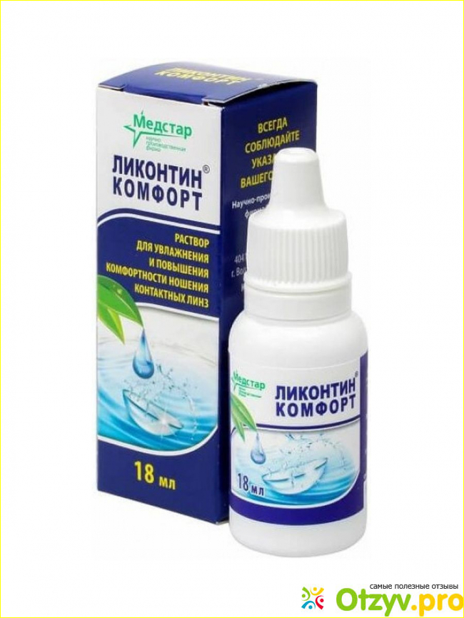 И за это время пробовала самые разные увлажняющие капли. И пришла к выводу, что нет особой разницы между дорогими и бюджетными. Сейчас уже год я пользуюсь российскими каплями Ликонтин-комфорт. Производитель называет их раствором. Но тем не менее, это капли для увлажнения глаз при ношении контактных линз.