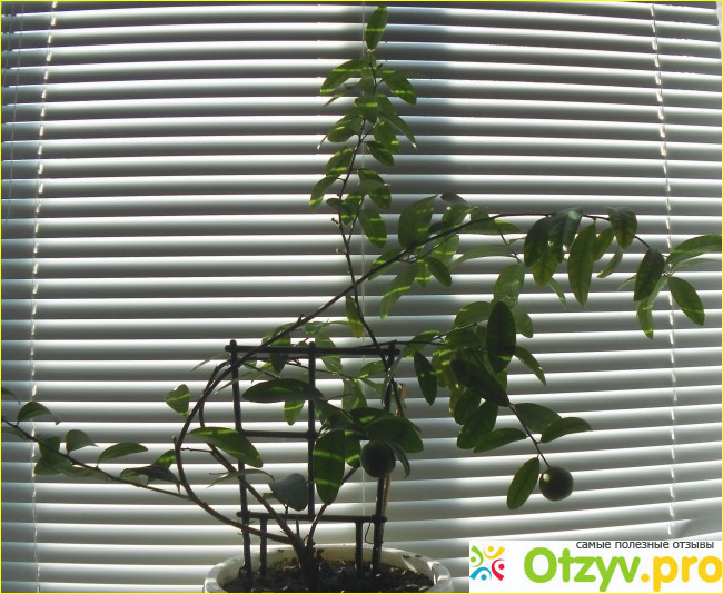 Лимонеллу нужно обязательно крепить к специальной подставке. Веточки у этого растения очень тонкие и просто не выдержат без опоры веса не только плодов, но даже и листьев. Такая подставка идем в комплекте с растением при продаже. В последствии, можно будет купить побольше.