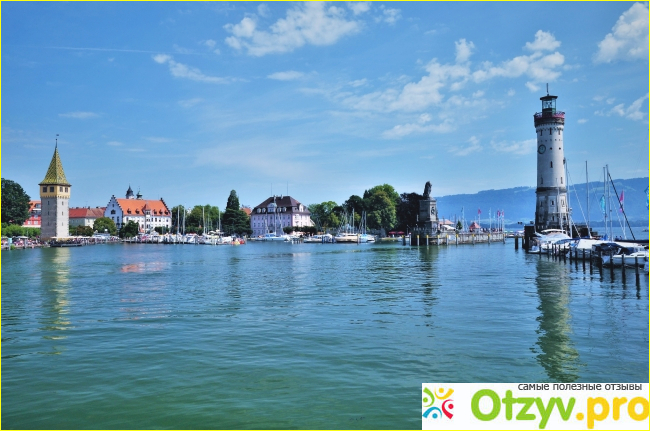 За известным входом в порт с баварским львом и белым маяком открывается впечатляющая панорама Альп и Боденского озера.