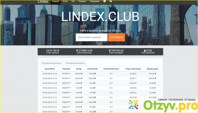 lindex.club стандартный хайп. Работает совсем недавно и на первой же страничке можно увидеть статистику по вкладам.