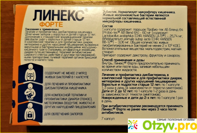 Решила написать о полезном лекарстве из домашней аптечки. Всегда принимаю Линекс, как только начинаются проблемы с кишечником (диарея, боли, плохо переваривается пища), вот уже около пяти лет. Мне их посоветовала мама подруги после выписки из стационара, мне тогда кололи много антибиотиков и едва не угробили всю кишечную микрофлору, мучилась бы долго, если б не начала пить Линекс форте.