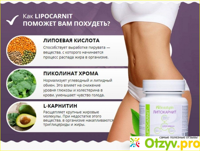 Средство Липокарнит в своем составе имеет несколько активных компонентов. Каждый компонент действительно воздействует на организм особых образом и в следствии этого пациента медленно. но верно начинает терять лишний вес. Но у добавке есть одна особенность, когда ее заканчиваешь принимать и при этом не регулируешь свой рацион и образ жизни, то лишний вес возвращается снова.
