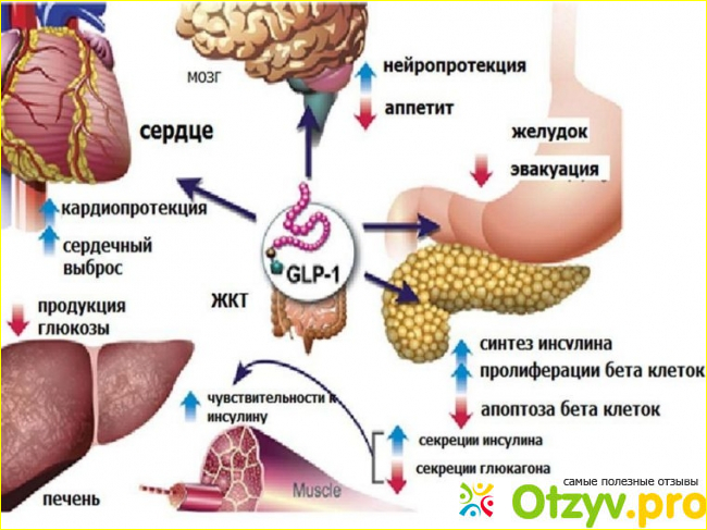 Лираглутид (Саксенда) - синтетического происхождения копия вырабатываемого человеческим организмом глюкагоноподобного пептида длительного действия.