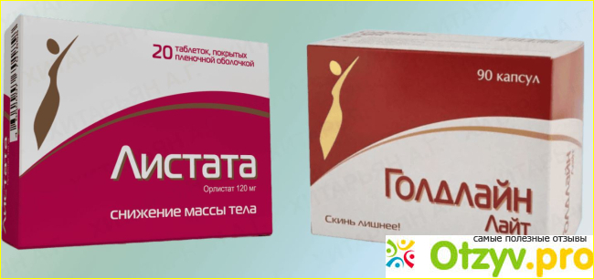 Голдлайн и Листата являются препаратами, которые относятся к различным фармакологическим группам. Действие Листата направлено на то, чтобы эффективно расщеплялись жиры в нашем кишечнике, поэтому, при приеме средства, часть жиров не будет усваиваться организмом и просто выводится. А Голдлайн является комбинированным средством, в котором содержится сибутрамин и целлюлоза микроскопическая. Первый компонент является веществом, которое способствует блокировке обратного захвата норадреналина и серотонина в нашем мозге, в результате чего позволяет повышать сытость и тем самым снижается аппетит. А целлюлоза является энтеросорбентом, который помогает связывать и выводить все накопленные токсины, а также избыточное количество метаболитов.