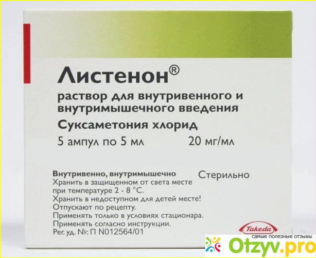 Никаких отзывов про данный препарат нет, так как он используется исключительно для стационарного применения и наркоза для пациентов. Самостоятельно использовать это лекарство нельзя, так как он является серьезным препаратом со всеми вытекающими обстоятельствами. Сами врачи описывают Листенон как высокоэффективное терапевтическое средство, которое часто используется при введении наркоза больным. У него не так много противопоказаний и рисков связанных с побочными явлениями, но все равно врачи должно точно выполнять все рекомендации, так как при использовании лекарство часто возникают нежелательные последствия. Допустим, для приготовленных к оперативному вмешательству пациентам дополнительно дают Атропин чтобы предупредить развитие брадикардии, При других операциях у пациентов с гипотонией (низким артериальным давлением) может развиваться остановка сердца. Поэтому вес моменты строго должны учитываться анестезиологом. Врачи отмечают, что после использования лекарства у пациента после могут развиваться жалобы на мышечные боли, но все это преходяще и не требует отмены терапии.
