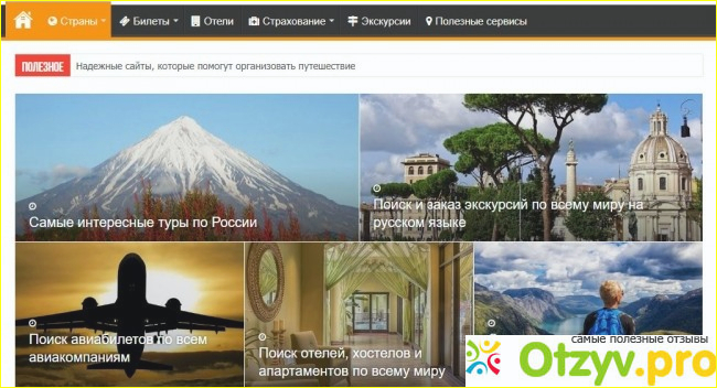 Еще можно этот сайт отнести к списку агрегаторов полезных сервисов по бронированию отелей, экскурсий. Здесь представлена информация по оформлению туристических страховок и виз. К слову, тут же можно и найти сервисы по предоставлению этих услуг.