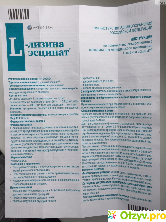 | Бренд: L-лизина эсцина | |