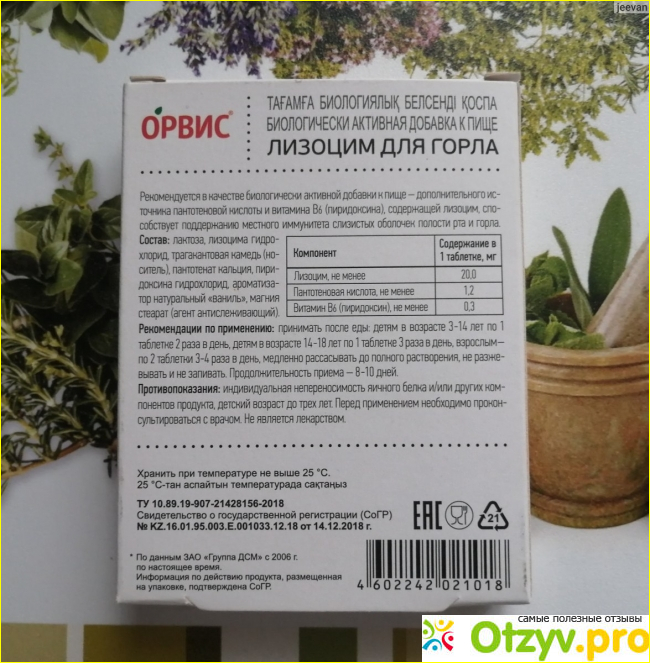 Я сегодня для примера взяла препарат, который содержит полезный лизоцим. Называется он “Орвис Лизоцим” для горла, производитель наш известный Эвалар. Давайте подробнее рассмотрим данное средство, особенно разберем все полезные свойства лизоцима, что он из себя представляет, при каких именно случаях его можно применять и так далее.