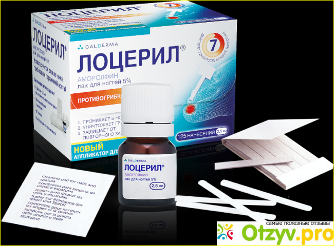 Лоцерил – это противогрибковое средство, который выпускается в виде лака для наружного использования и является противогрибковым средством, непосредственно воздействующим на патогенный грибок. В нем содержится вещество Аморолфин, которое глубоко проникает в толщу ногтевой пластины и кожу под ногтем, что очень важно для достижения положительного эффекта. Проникая глубоко в ногтевое ложе, вещество обнаруживает повреждения и полностью уничтожает грибковые патогены. Достоинствами лака Лоцерил заключаются, прежде всего, в удобной форме выпуска в виде лака для ногтей. Он быстр и удобен в использовании, его можно использовать только раз в неделю, что позволяет продукту прилипать к ногтю, обеспечивая длительный терапевтический эффект. По сравнению с другими противогрибковыми препаратами, лоцерил не смывается с ногтей, может безопасно контактировать с водой, его можно даже использовать с косметическим лаком для ногтей. От воздействия обуви она не стирается ни в душе, ни в ванне, ни в бассейне, что позволяет вести активный образ жизни и не заморачиваться с этой проблемой
