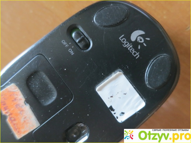 Logitech Cordless Mouse M325 (910-003026) Ink Gears находится кнопка выключения и включения.