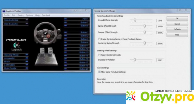 Как установить руль каждый уже решает сам, это лучше всего продумать заранее. Всё-таки вещь эта массивная и желательно под неё оборудовать отдельное место. Для комфортной игры всё-таки лучше укрепить руль зажимами. Система Windows без проблем опознаёт руль автоматическим способом, все необходимые драйвера могут быть установлены сразу с интернета. Поддерживаются Windows 8, 7, Vista и XP. Также всё программное обеспечение можно установить с диска который идет в комплекте с рулём. Там имеется программа Logitech Profiler который можно менять конфигурацию кнопок и производить другие игровые настройки. Есть поддержка множества вышедших игр.