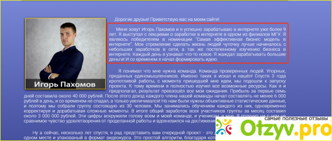 Польза от курса нулевая. Подобной информации, как от господина Пахомова, в интернете полным полно в свободном доступе и бесплатно. И самое главное, что с помощью авторской системы вы не заработаете.