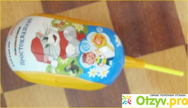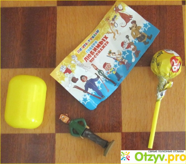 Капсула достаточно большого размера сразу привлекла внимание сына и он попросил меня ее купить. Повертев ее в руках, по торчащей из нее палочки, мы сразу догадались что внутри нее находится Чупа-Чупс, ну и какая-то игрушка из любимого нами мультика.
