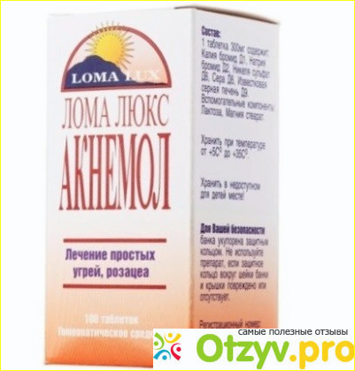 Лома-Люкс Акнемол в своем составе содержит довольно неоднозначный состав. Думаю, что именно потому, что не все понятно, действие такое замедленное. Соли металлов, входящие в состав препарата могут вызвать аллергию, так что внимательно прислушивайтесь и присматривайтесь к реакции своего организма после начала приема.