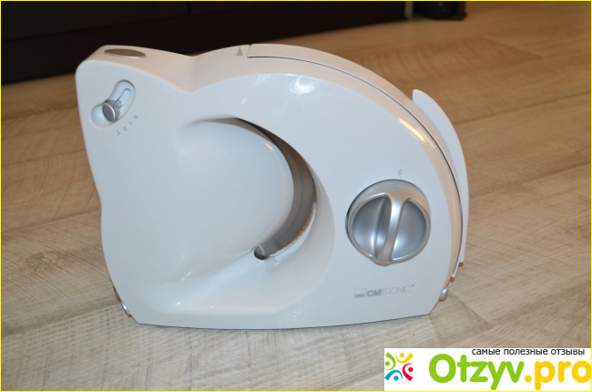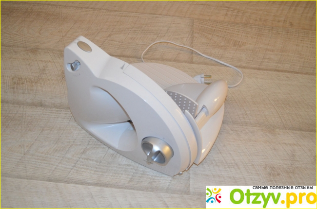 Преимущества: - легкое изменение толщины ломтика, - неповрежденные продукты, - съемный нож, - легко мыть, - качество больше, чем ожидалось.