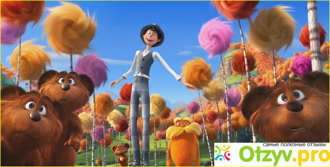 Хочу сказать пару слов о Лораксе. Он абсолютно точно не был главным героем (заметьте, в описании сюжета, о нём речь вообще не идёт), но ключевым персонажем был точно. Он не является никаким животным, и это одно из самых приятных, так как такое существо можно увидеть только на экране. Лоракс — мифическое существо — защитник леса, способный даже на колдовство. Хочу отметить его цвет. Рыжий — это очень удачный цвет, такой солнечный и позитивный. Ну, и, конечно же, его усы. Это просто какой-то шедевр. Исполнение Дэнни ДеВито порой просто сражало меня наповал. Особенно запомнилась фраза: « Это я фрикаделка? А ну пойдём вийдем! » — с этим акцентом звучала уморительно. К слову, ДеВито большой молодец. Дай Бог, каждой голливудской знаменитости такое стремление. Короче говоря, он прекрасен.