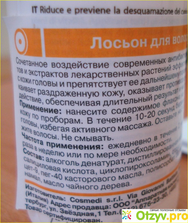 Сам лосьон имеет слабый лекарственный запах, который не остается на волосах и не раздражает обоняние.