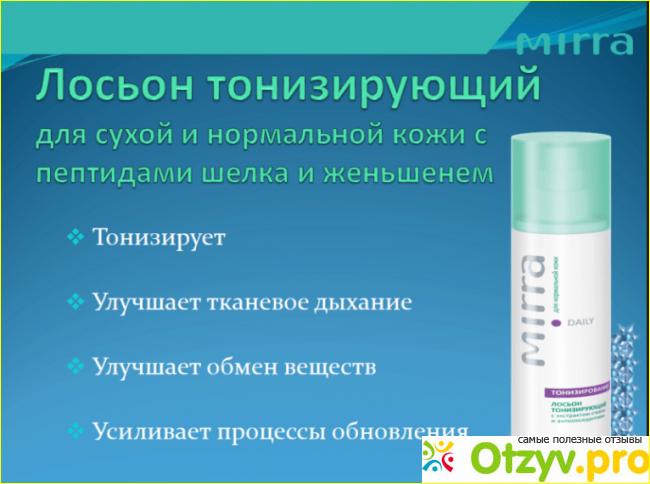 Кожа у меня комбинированного типа, нуждается в питании и увлажнении все равно, так как возраст за 30 лет. Искала долгое время для себя идеальный вариант после тоника очищающего, что-то в духе тонизирования и подготовки к нанесению крема, чтобы еще и без спирта, максимум эффекта. И для меня таким средством стал тонизирующий тоник от Мирра.