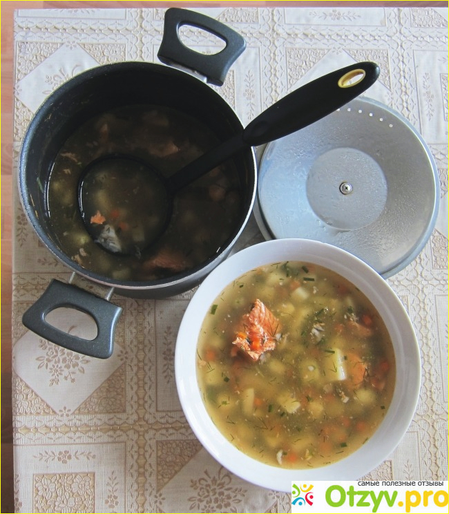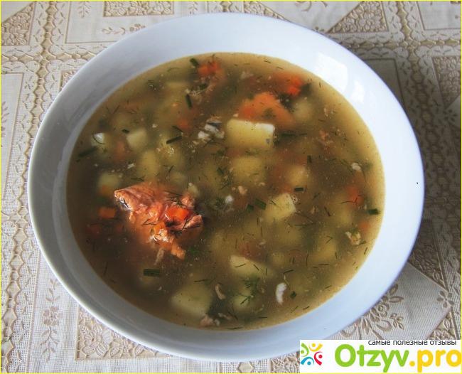 Кижуч на нашей кухне гостит чаще других. Даже мне запомнилось это название. Вот, в последнее время попадается именно такой - производства "Устькамчатрыба". И действительно, в супе рыбка оказалась хороша. Ведь происто есть вилкой из банки или тарелки я могу только кильку в томатном соусе, да и то не от всех производителей. А в отношении других рыбных продуктов очень привередливый. Но Кижуч мне определённо пришёлся по нраву.