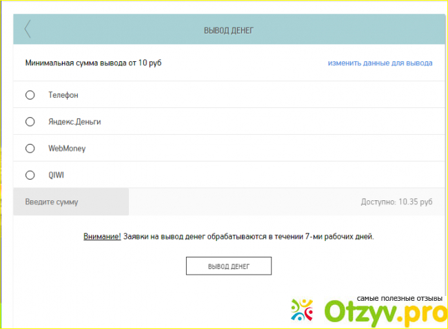 Деньги можно вывести на электронный кошелек, на карту или телефон. Муж обычно выводит на телефон, быстро и удобно. Минимальная сумма для вывода- 10 рублей.