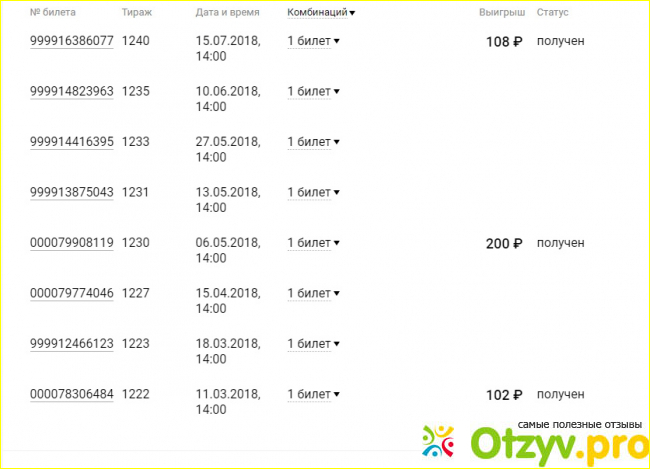 Месяц спусстя я приобрела еще один билетик. И как видите, выиграла 200 рублей. Через неделю 100 рублей я потратила на один билет, а еще через одну неделю оставшиеся 100 рублей - не другой. Как видите - по ним зеро.