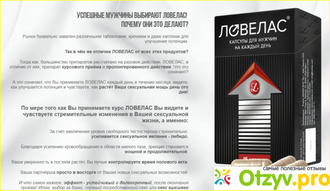 Начались проблемы с потенцией - думал, что все - время мое тю-тю, вышло. Но наткнулся в интернете на статью где рассказывалось о преимуществах средства Ловелас, и прочем там описание и реальные отзывы.