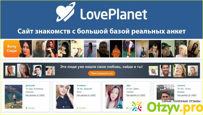 Сайт знакомств loveplanet ru позволит найти собеседника не только из близлежащих городов, но и из других областей и даже стран.