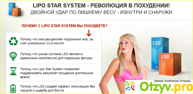 Наверняка немножко или прилично похудеть мечтают многие из нас, а как осуществить свою насущную мечту так, чтобы ненавистные больше никогда не возвращались, ну или почти никогда. Есть решение для этого вопроса средство для похудения Lss или полностью LipoStarSystem. Препарат как раз таки рассчитан на общее уменьшение нежелательных объемов.