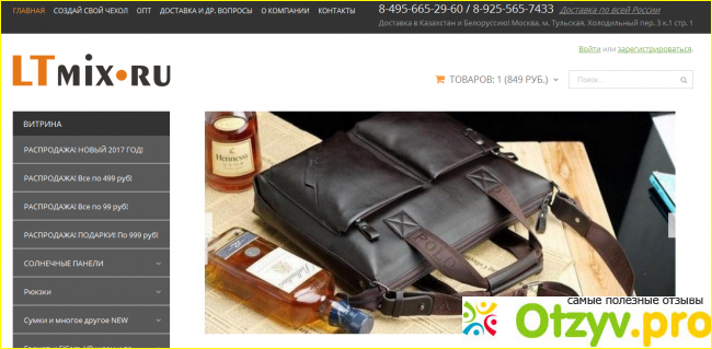 Сайт выглядит довольно строго, в отличие от остальных сайтов. Преобладает чёрную и оранжевую цветовую гамму. В шапке сайта расположена информация о интернет-магазине вместе с номером телефона, по которому можно позвонить, узнать есть ли товар в наличии, а также размещена информация с адресом данного интернет-магазина в Москве. Левее расположен каталог, а так называемая в этом интерне-магазине "Витрина". Большой ассортимент имеется различных товаров: солнечные очки, рюкзаки, сумки, гаджеты, аксессуары для планшетов, чехлы для электронных книг, для планшетов, аксессуары для смартфонов, USB кабели, наушники, аккумуляторы, батареи для смартфона, карты памяти. Также, появилась в наличии одежда женская и мужская. Правее размещены товары с картинками которые рекомендует для продажи данный интернет-магазин со имеющейся скидкой.