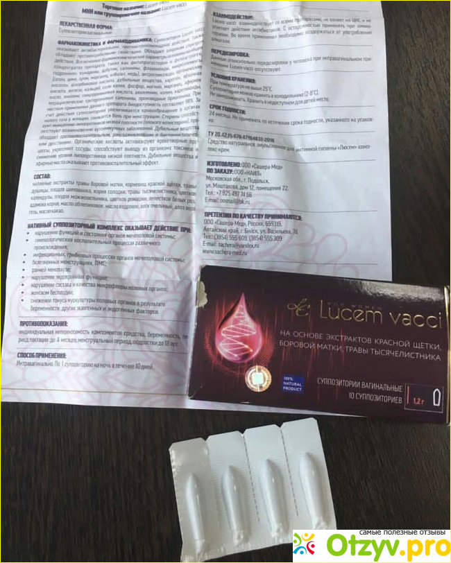 LUCEM VACCI производит российская компания Сашера-Мед. Это свечи вагинальные. Сделаны на основе природных компонентов, на коробке написано 100% натуральный продукт.
