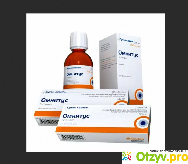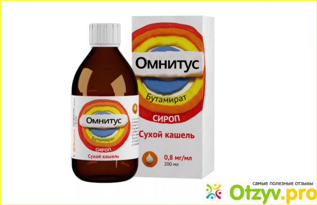 Лекарственная форма препарата - это сироп. В одном его миллилитре содержится активное вещество под названием цитрат бутамирата, его здесь 0,8 миллиграммов. К вспомогательным ингредиентам относятся следующие компоненты: сорбитол - семьдесят процентов, глицерол, сахарин натрия, ванилин, бензойная кислота, анисовое масло, гидроксид натрия, этанол - девяносто шесть процентов, а также очищенная вода. Омнитус блокирует рецепторы кашлевого центра, так что уже первую ночь с ним вы сможете спокойно спать. Ранее мне этого очень не хватало, я постоянно кашляла в кровати, не могла заснуть сама и мешала бедному мужу.