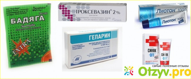 Гепарин обладает свойствами провоцирующими свертываемость крови и блокирует тромбоз. Гематома или сгустки крови рассасываются и синяк проходит быстрее. Препаратов, в составе которых есть гепарин, много – это Гепариновая мазь, Тромблесс гель, Лиотон, Гепарин Акригель, Лавенум и т. д. Помимо активного вещества в составы включены дополнительные компоненты – антисептики, обезболивающие, антибактериальные и другие. Преимущества средств на основе гепарина в том, что это препараты широкого действия – могут лечить не только гематомы, а также суставные боли, геморрой, травмы и т. д. К недостаткам относятся противопоказания, например нельзя накладывать гепарин на открытую рану, так как препараты усилят кровотечение. Также средства не рекомендуют при склонности к аллергическим реакциям. Мази и гели необходимо наносить часто – минимум пять, шесть раз в сутки, что также не совсем удобно. Несомненный плюс – низкая стоимость в купе с высокой эффективностью, ставят средство на первое место по оказанию первой помощи при ушибе мягких тканей.