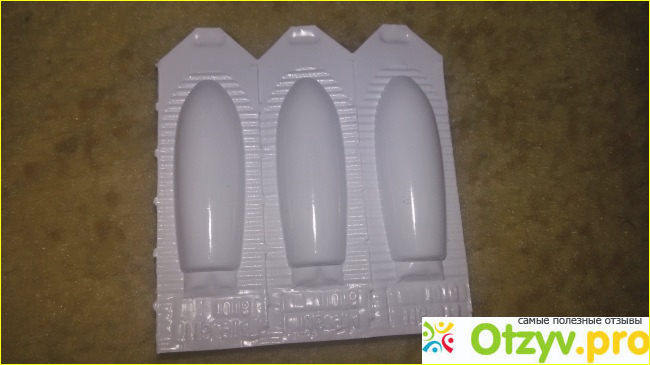 Продаются свечи в картонной упаковке, в количестве 10 штук. Средняя цена-280 рублей. Имеют молочный цвет и торпедообразную форму. Стоит отметить, что используя Гексикон, вы не обойдетесь без ежедневных прокладок. Они сильно вытекают.