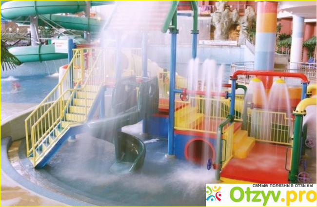 Для малышей имеется водопад, три маленьких и одна средняя горка, большое количество фонтанов. Температура воды более , чем комфортная. ( 32-33 градуса Цельсия).