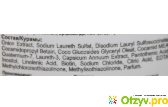Состав не самый хороший, но для того, чтобы справится с проблемой уже на это закрываешь глаза. Здесь применяются довольно агрессивные и всем известные ПАВы, присутствует экстракт лука и красного перца, которые хорошо действуют на луковицу волос.