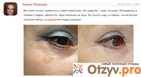 Популярность препарата кроется в его быстром действии. Это экстремальное омоложение, сравнить которое можно с химическим удалением несовершенств, вот только вреда от натурального состава био-средства никакого. Такой уход за кожей позволит долго оставаться на пике красоты и совершенства, продлит молодость и здоровье кожи, обеспечит идеальный внешний вид».