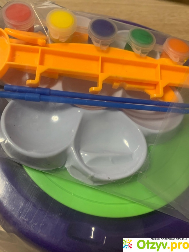 Этот комплект стоил 2500 рублей. Да, не особенно дешево, но если увлечься, правильно преподнести занятия, то можно посвятить работе довольно долгое время. Сбда входит пластиковый гончарный круг, который работает от батареек, глина, краски и кисти для раскрашивания изделий, приспособления для срезания глины с круга. Оставалось только разобраться с тем, как это работает и просто начать творить и действовать.