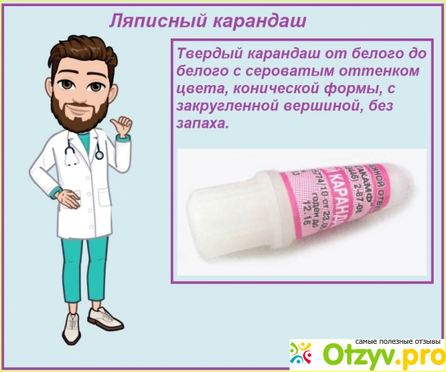 Таким образом, ляписный карандаш прижигает поврежденный участок поверхности кожи, проникает глубже, устраняет источник заражения, блокирует распространение вирусной инфекции и восстанавливает кожный покров.