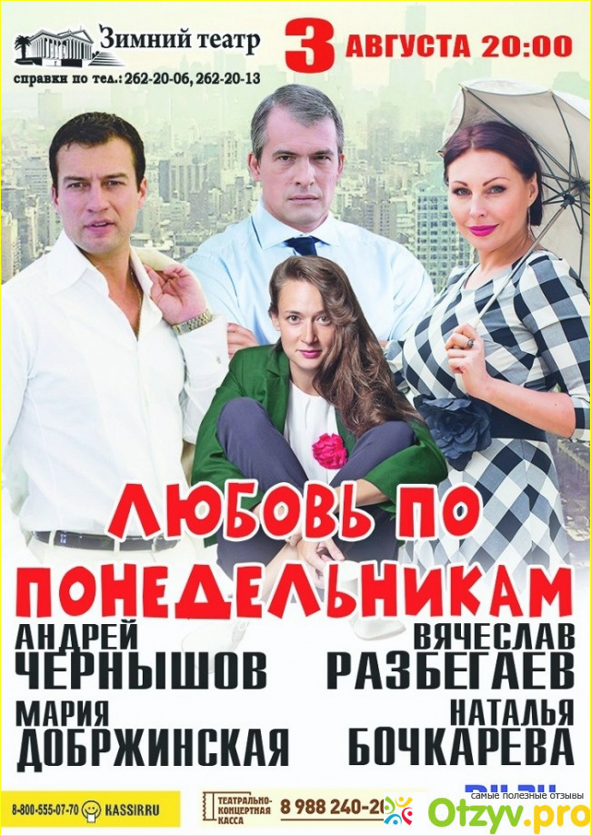 Восхитиельно. ЛЮБОВЬ ПО ПОНЕДЕЛЬНИКАМ ОТЗЫВЫ О СПЕКТАКЛЕ отзывы - развод или правда?