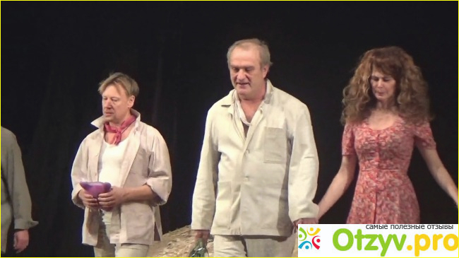 На протяжении просмотра данного спектакля у меня было впечатление, что всё происходит в действительности, тебя не покидает ощущение чувственного реализма. Хочу отметить, что актерский состав у данного спектакля просто невероятный. В главных ролях Дмитрий Харатьян, Александр Балуев, а также Дарья повереннова. Честно говоря, я не ожидал от этого спектакля такую бурю эмоций, которую получила. При этом события, происходящее на сцене поражают своей обыденностью и реальностью, а иногда и привычностью.