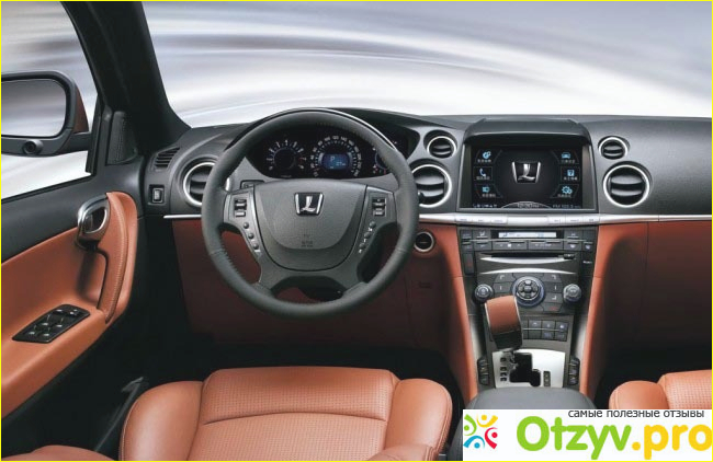 Очень хорошо в машине сделан салон, оформленный кожей. Здесь тоже можно сделать выбор, кожа будет чёрная или терракотовая. Сами сиденья довольно большие и удобные, но приоритеты здесь больше для водительского кресла, поскольку только водительское кресло имеет подогрев. Оно снабжено регулировками и даже массажем. То есть, о водителе здесь позаботились основательно, а о пассажире забота значительно меньше. Важно также отметить наличие интеллектуальной панели управления. В частности следует отметить многофункциональную платформу THINK (воспроизводятся разные аудио и видео файлы, поддерживаются системы безопасности, есть возможность использование мобильника в громкой связи).
