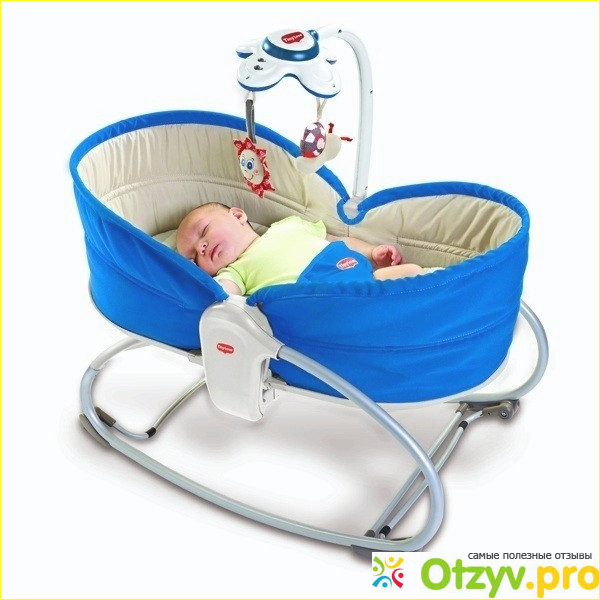 Люлька-баунсер - это переносное детское кресло с режимом вибрации и съёмной дугой с закрепленной на ней электронной свето-музыкальной игрушкой, на которые крепятся игрушки для малыша. Музыкальная игрушка совершенно не громкая, там играет медленная монотонная музыка/, что поможет укачать ребенка. Уровень наклона кресла можно регулировать (сидя, лёжа). Устройство вибрации здесь особое - не входящее в резонанс с биологическими ритмами человека, оно не вызывает расстройства и вестибулярного аппарата и не может вызвать привыкания. Дополнительной функцией баунсера является механическая люлька, которая позволит маме по старинки укачивать малыша, а специальные стопперы и регулятор высоты кресла позволят фиксировать кресло как в положение полулежа, так и превратить в уютную колыбельку для малыша.